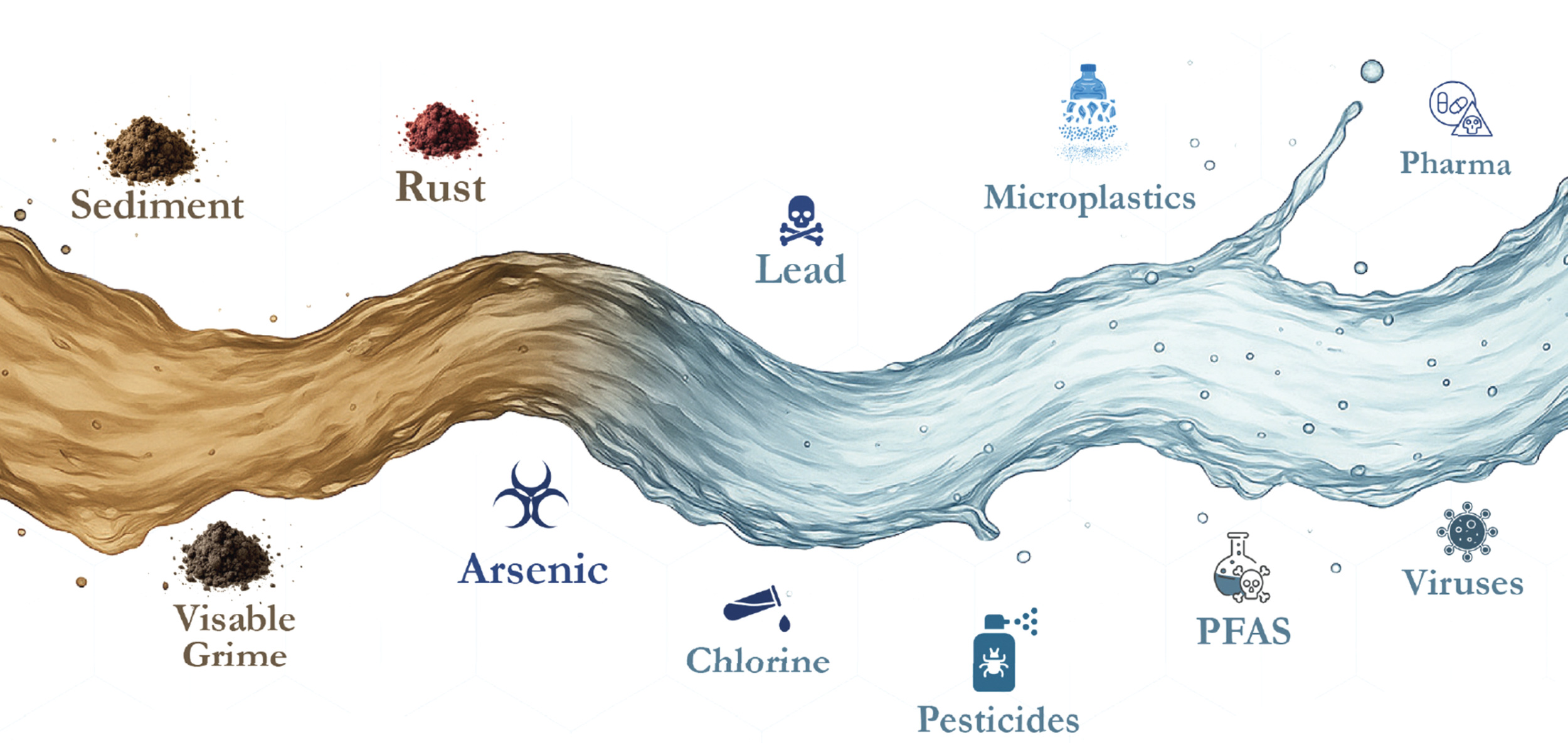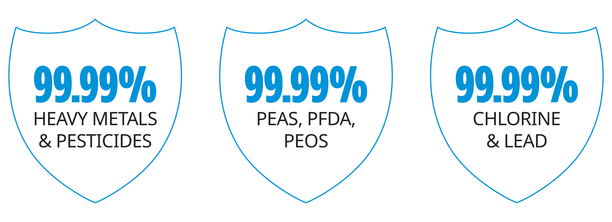 Pure Way system removes up to 99.99% of contaminants, including PFAS, lead, arsenic, chlorine, THMs, microplastics, pharmaceuticals, bacteria, viruses, and fungi—far beyond what basic filters or softeners achieve.
