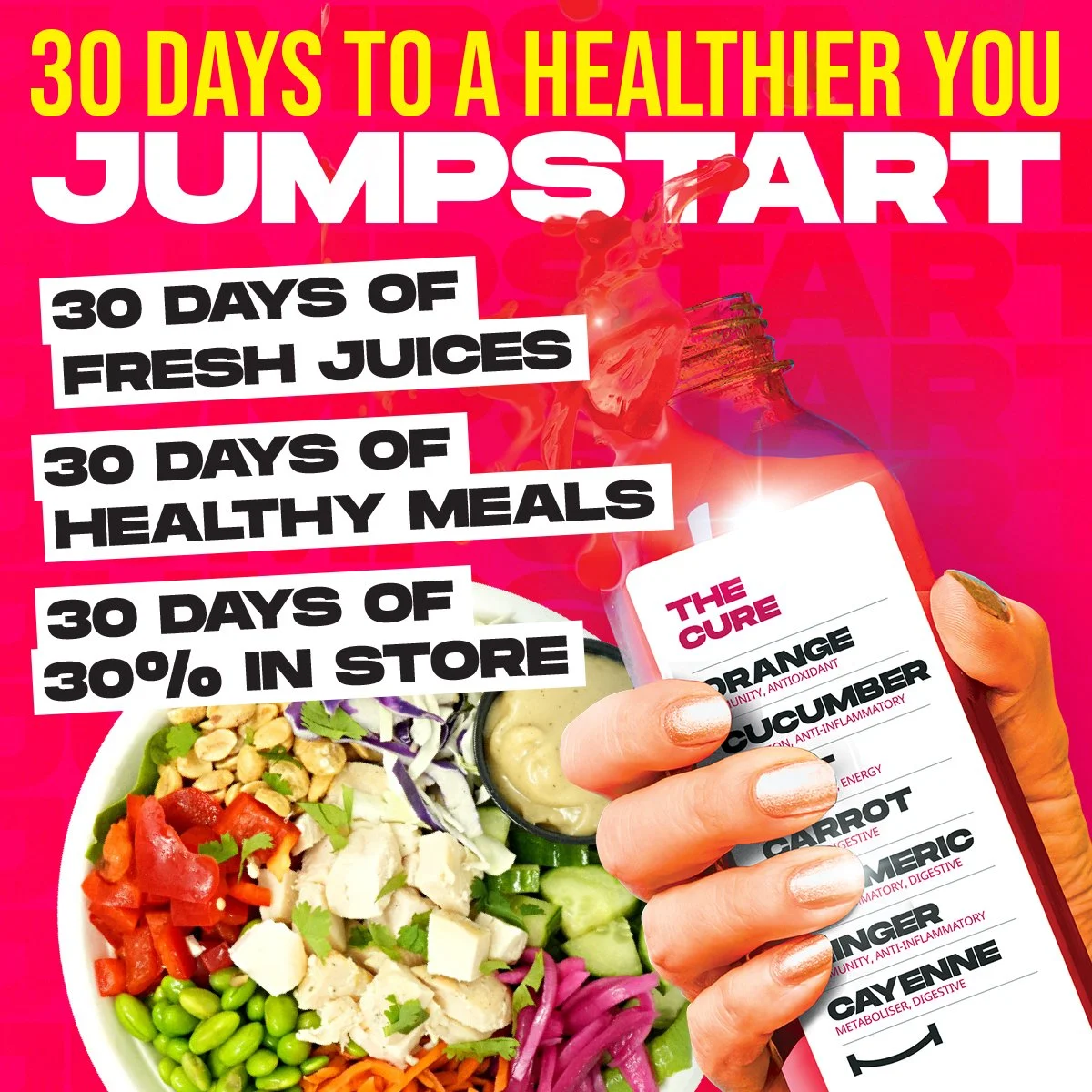 • 30 days of fresh-pressed juices