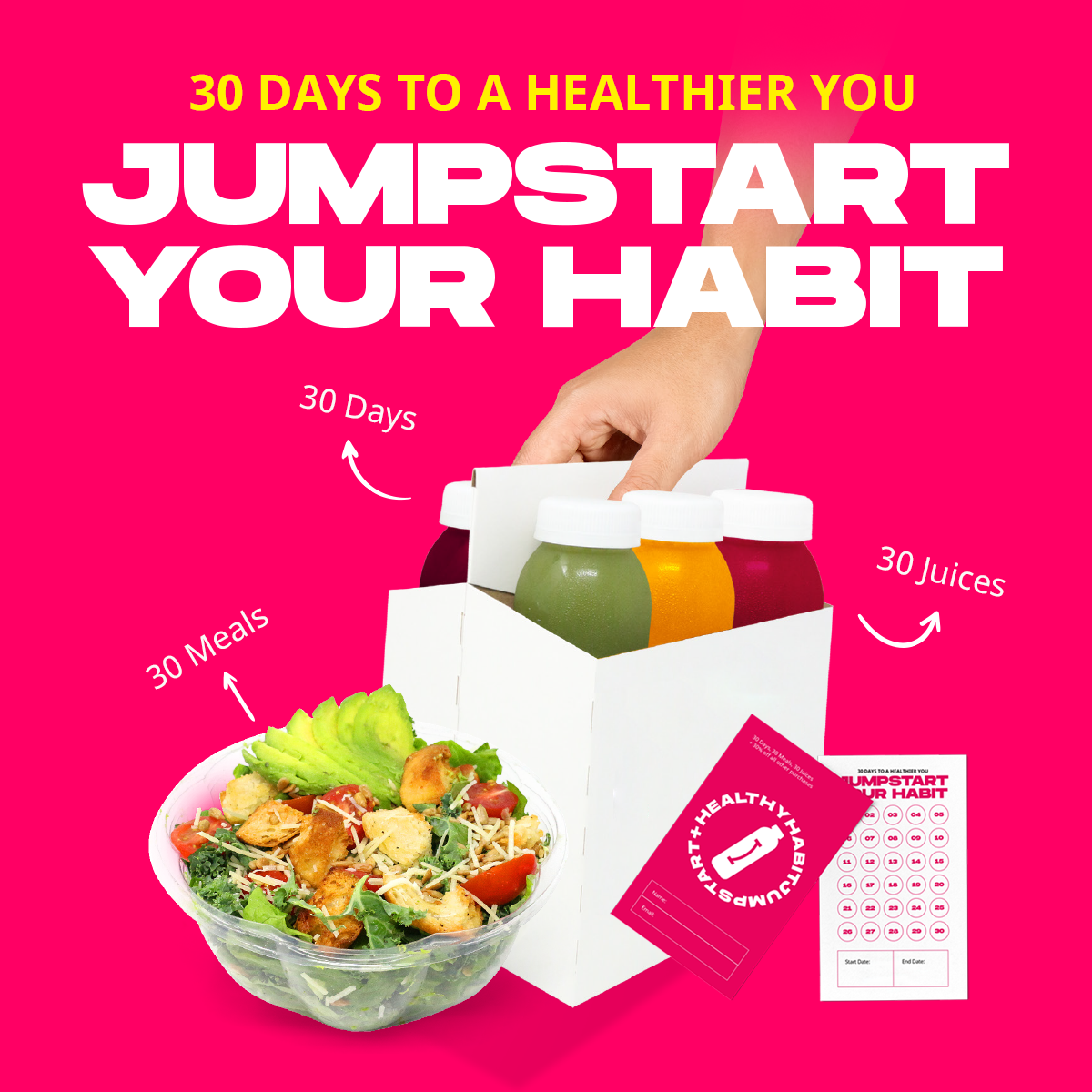 The fact of the matter is we truly are what we eat, and personal health starts with what you put into your body. The problem is eating healthy is never convenient. It takes work, discipline and it’s easy to fall off the wagon. Statistics show it takes on average about 30 days to cement a new behavior as a habit into your daily routine, but that's easier said than done...enter....Healthy Habit Jumpstart+. A 30 Day Wellness Challenge centered around delivering unprecedented value to those who choose to accept and commit to the 30 day challenge to eat well, live right, and redefine what health means in 2023 and beyond.
